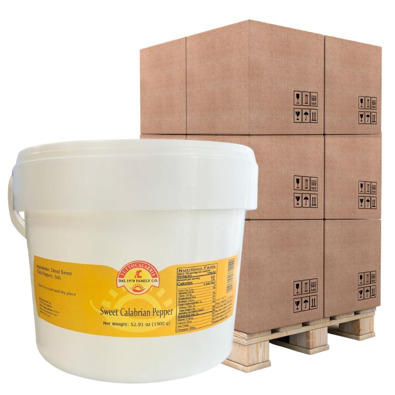 TuttoCalabria “Sweet” Calabrian Chili Powder – Plastic Tub, 52.91 oz (1.5 kg) Enjoy the rich, fruity flavor of Calabrian chili peppers without the intense heat with TuttoCalabria “Sweet” Chili Powder. Made from 100% Italian sweet Calabrian peppers, this spice delivers a vibrant red color, aromatic depth, and gentle warmth, perfect for adding authentic Southern Italian flavor to any dish. Packaged in a large 52.91 oz (1.5 kg) plastic tub, it’s ideal for restaurants, pizzerias, caterers, or home cooks who want an abundant supply of this versatile seasoning. Use it to enhance pizza, pasta, seafood, roasted vegetables, stews, or even bread dough for a rustic, flavorful twist. Product Highlights: Made with 100% Italian sweet Calabrian peppers (Peperoncino dolce) Mild, aromatic flavor... View More